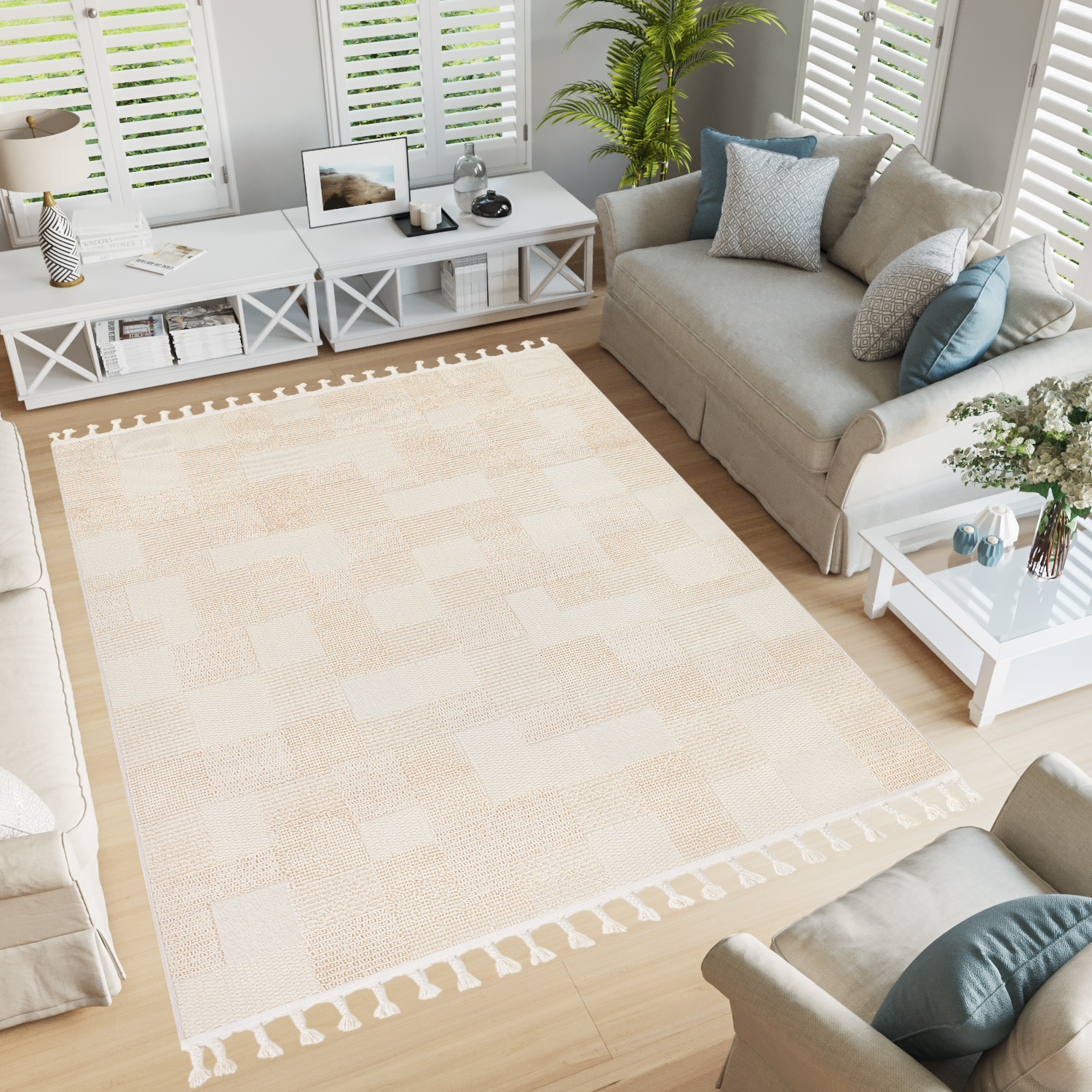 A characteristic feature of the Rio Loop collection is the fringes, which add texture and character to every space. They give the space a special charm and create a relaxed and cozy atmosphere.