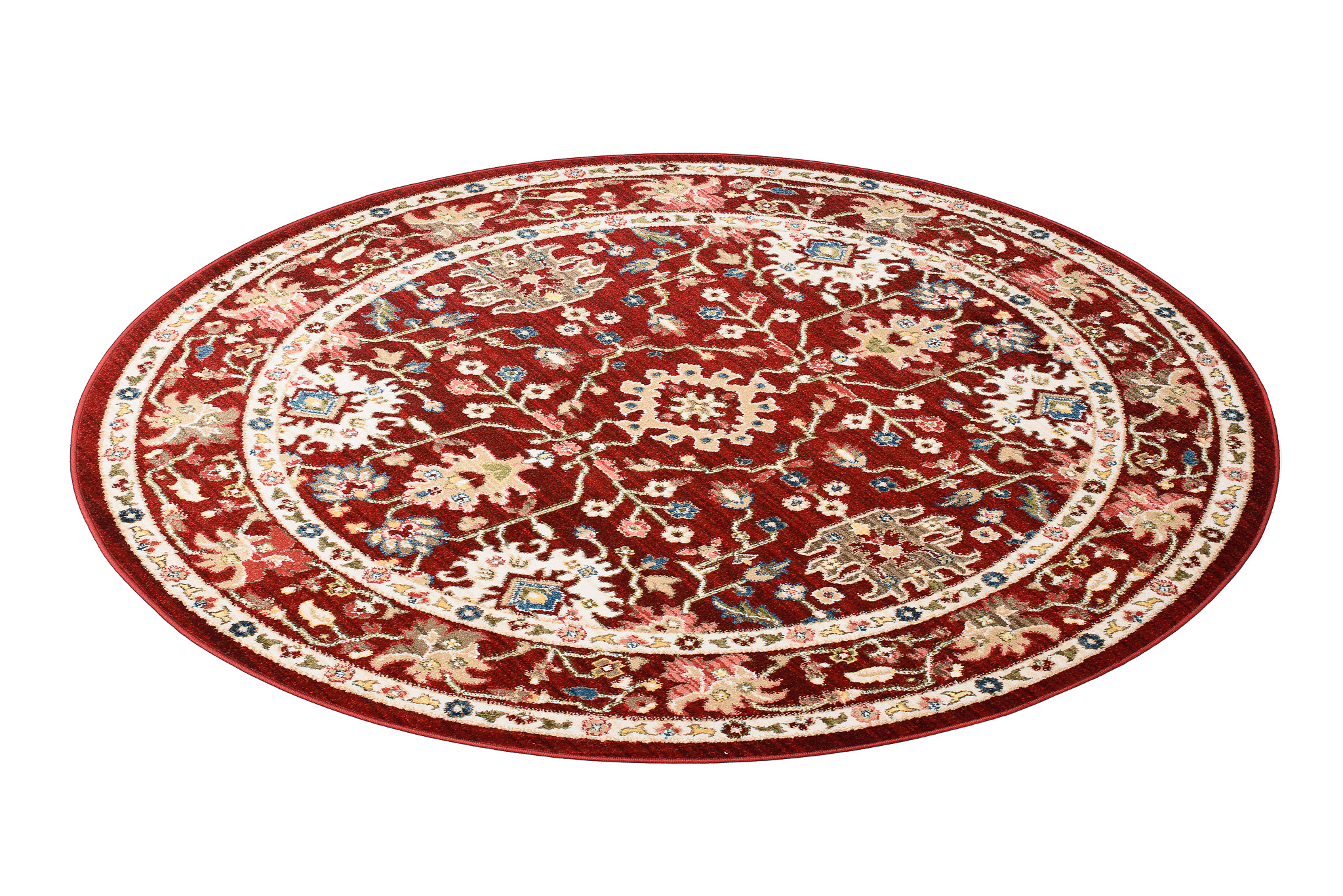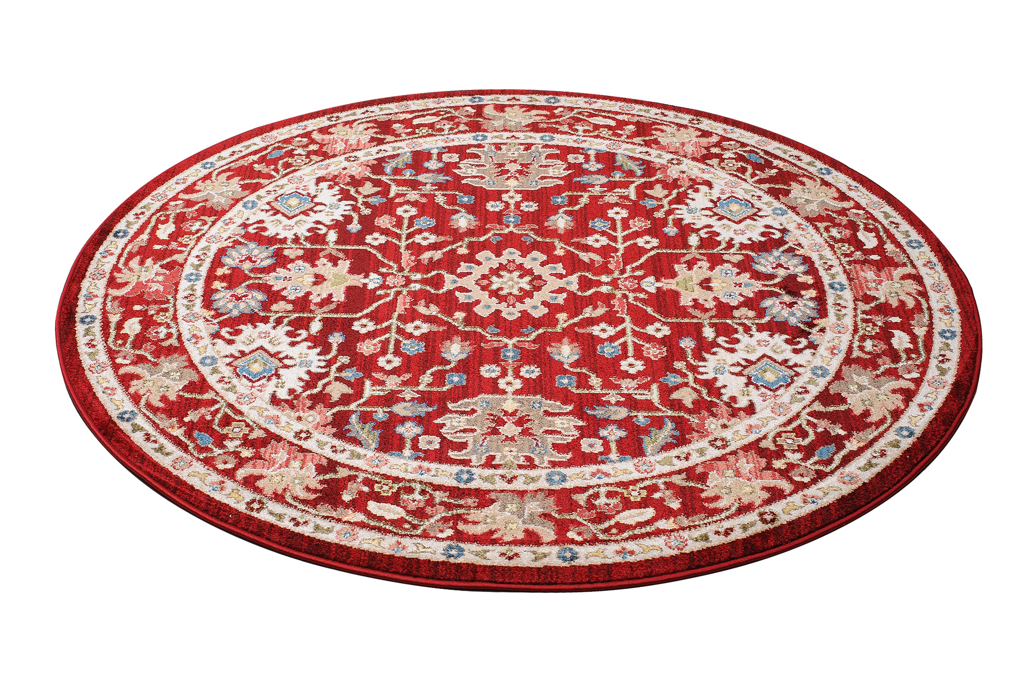 Rivoli rugs are a collection of traditional round rugs, designed to add a touch of elegance and warmth to any room. With rich shades of red, blue and cream, these rugs are perfect for adding a classic and sophisticated look to your space. Made from high quality materials, these rugs are soft and durable, making them perfect for high traffic areas. The intricate traditional designs, inspired by classic motifs, will add depth and character to your floors.