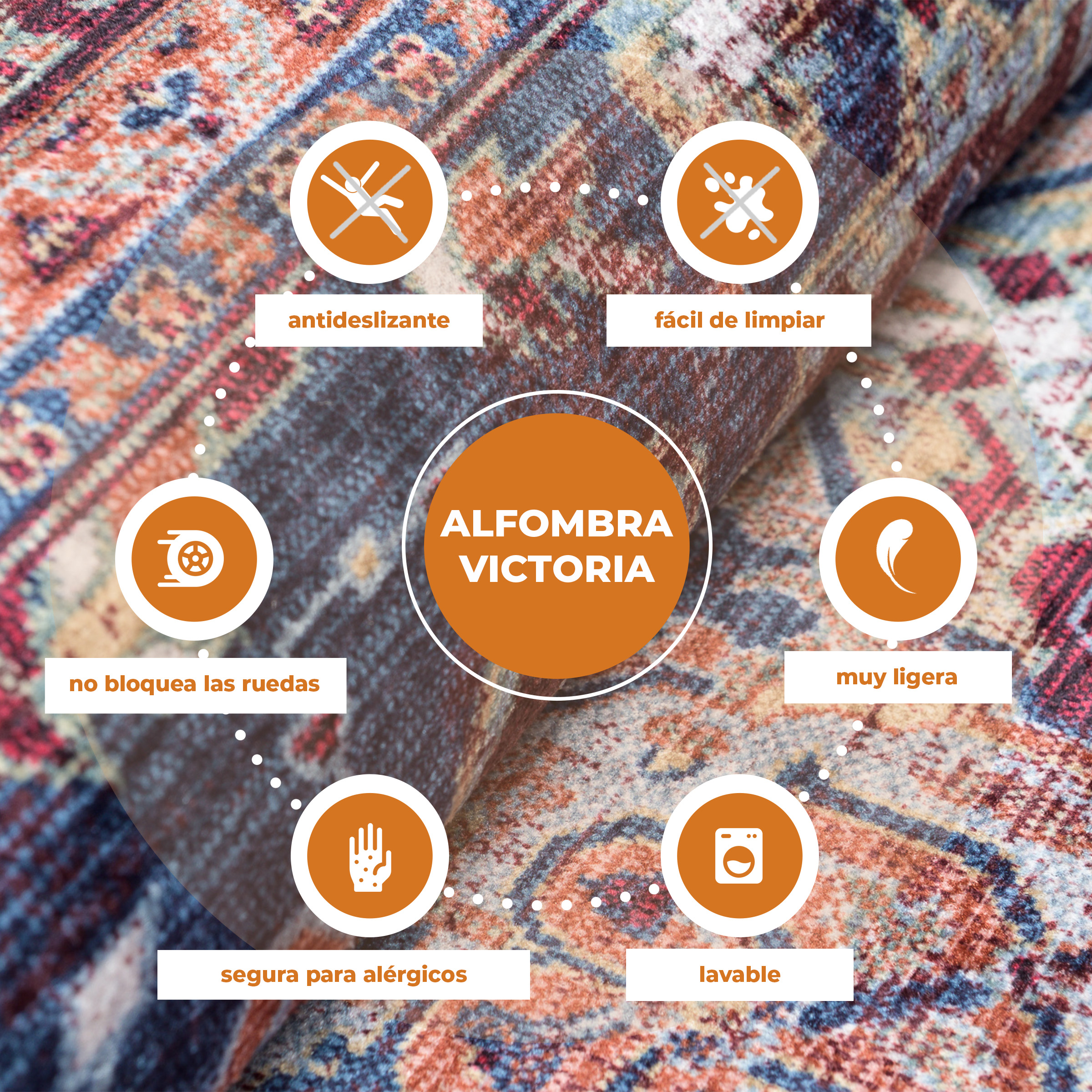 The non-slip printed carpets from Victoria Collection will delight all lovers of traditional style. The intense colours and unusual fashionable patterns will look great in a bedroom or living room in both modern and traditional styles.