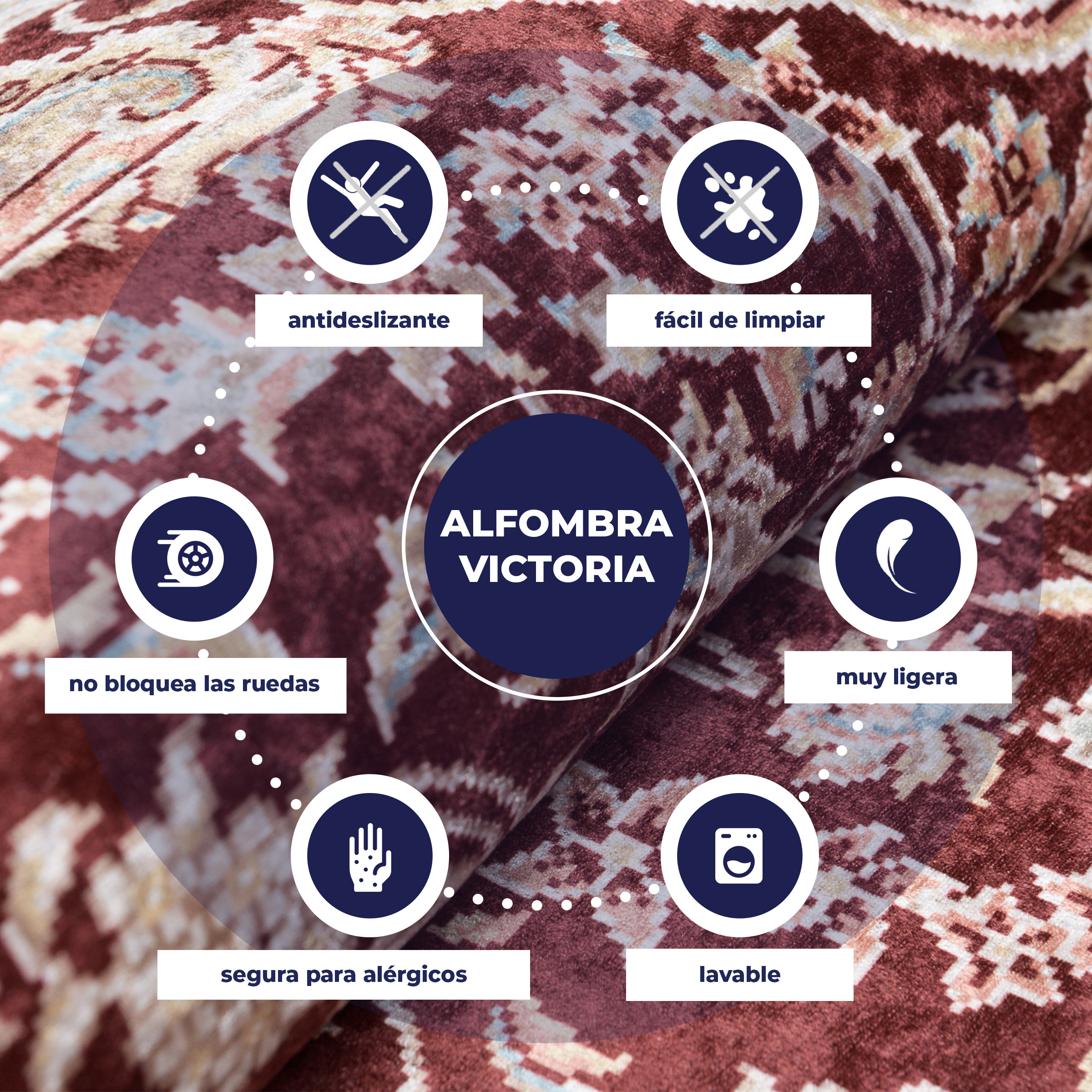 The non-slip printed carpets from Victoria Collection will delight all lovers of traditional style. The intense colours and unusual fashionable patterns will look great in a bedroom or living room in both modern and traditional styles.